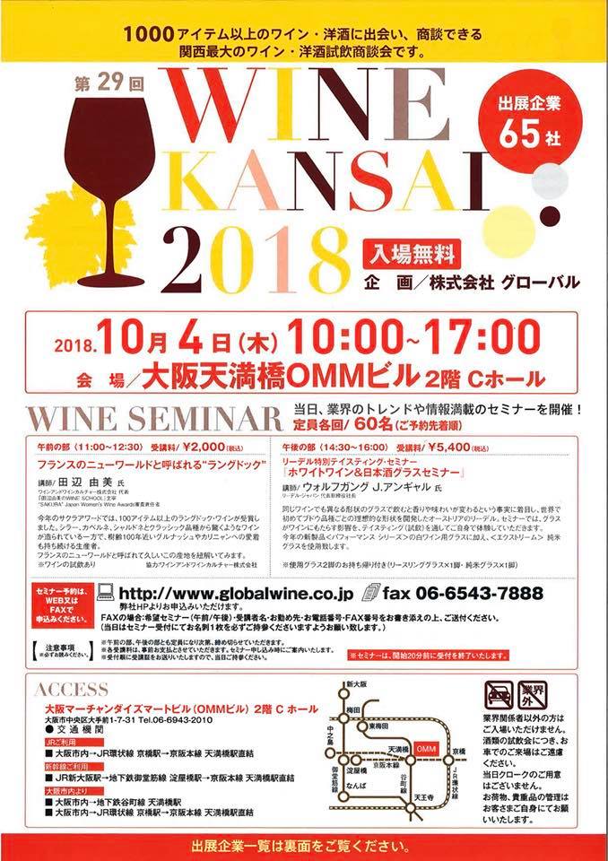 関西最大のワイン商談会!ワイン関西に初出店します 2018.09.14 シャトー勝沼が初めてワイン関西に出店致します。 是非ご来場をお待ちしています。 ※こちらのイベントは、業界関係者の方向けのイベントになります。