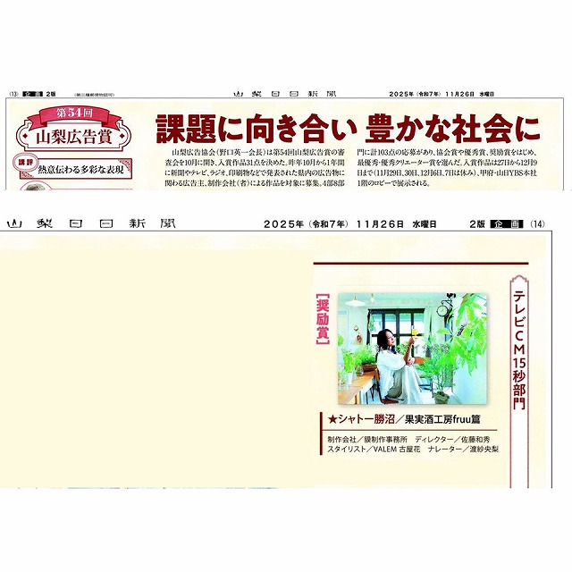 「果実酒工房 fruu 編」が テレビCM15秒部門・奨励賞 を受賞