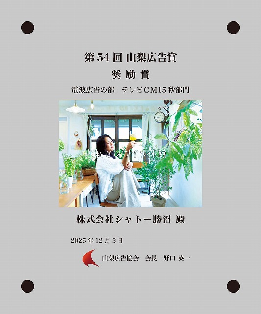 テレビCM15秒部門・奨励賞 を受賞いたしました。
